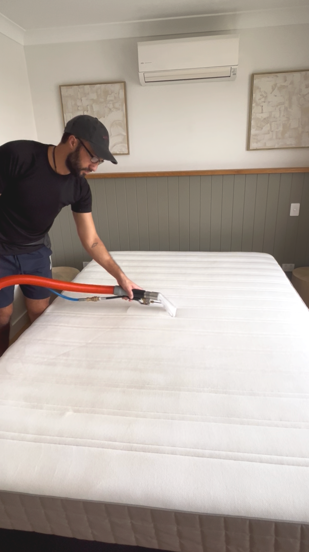 We vacuum to remove surface debris before moisture is introduced. Meanwhile, we assess the mattress to identify stains, odours, fabric type and condition, and any damage or high-risk areas. This allows us to choose the safest and most effective cleaning method.